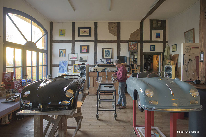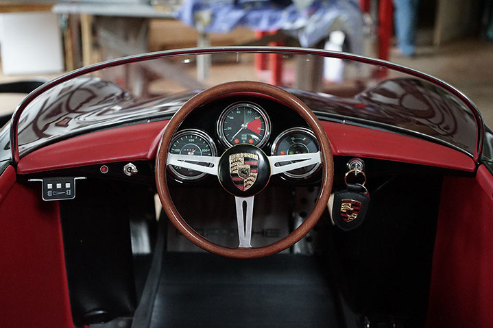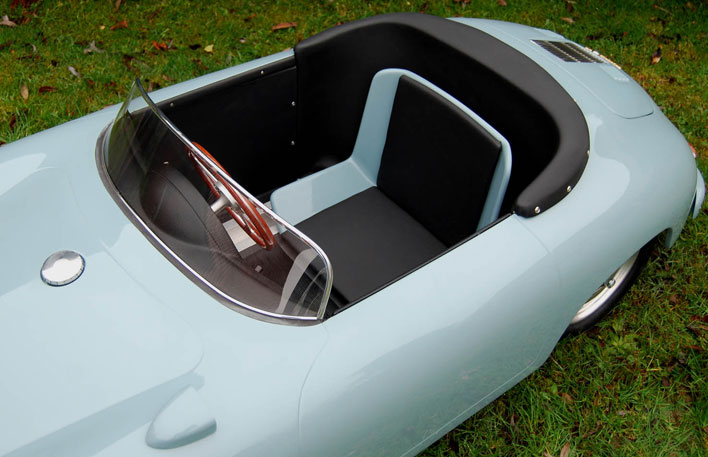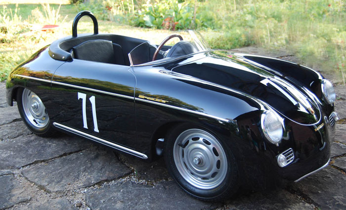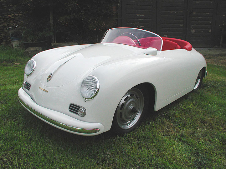 The Porsche 356 Speedster and 550 Spyder in scale 1:2.3 are handmade in Germany, using the best materials. Both cars are equipped with an electric motor. You can order the modelcars without an engine as well. The models will be built in limited editions and under license from Dr. Ing. h.c. Porsche AG.