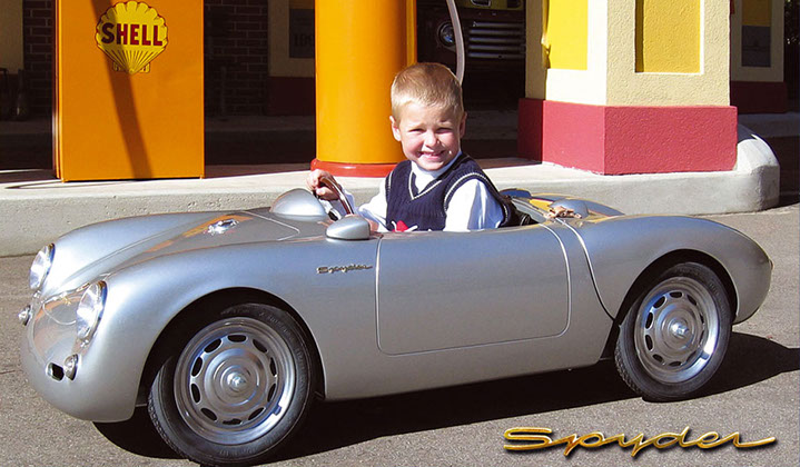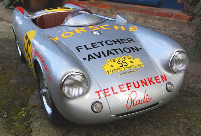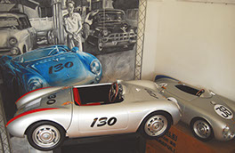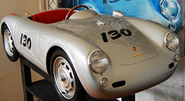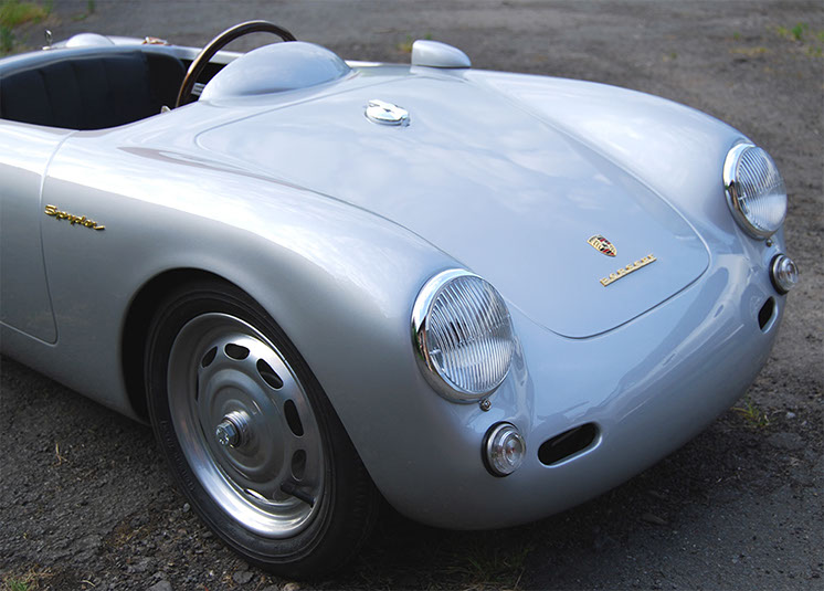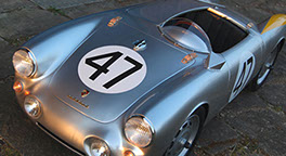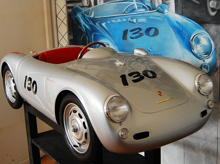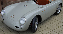 The Porsche 356 Speedster and 550 Spyder in scale 1:2.3 are handmade in Germany, using the best materials. Both cars are equipped with an electric motor. You can order the modelcars without an engine as well. The models will be built in limited editions and under license from Dr. Ing. h.c. Porsche AG.