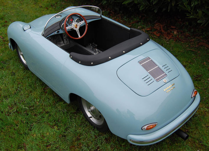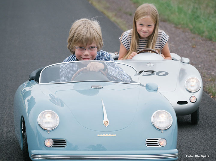 The Porsche 356 Speedster and 550 Spyder in scale 1:2.3 are handmade in Germany, using the best materials. Both cars are equipped with an electric motor. You can order the modelcars without an engine as well. The models will be built in limited editions and under license from Dr. Ing. h.c. Porsche AG.
