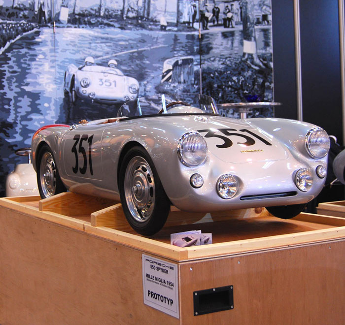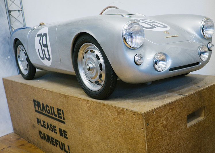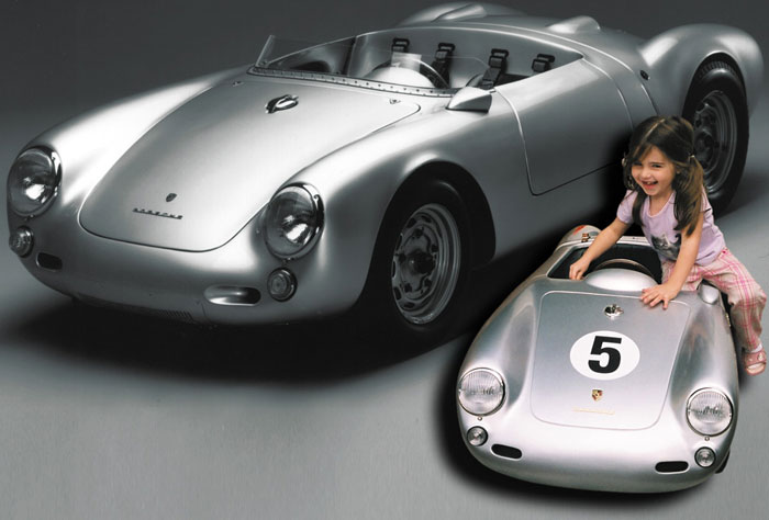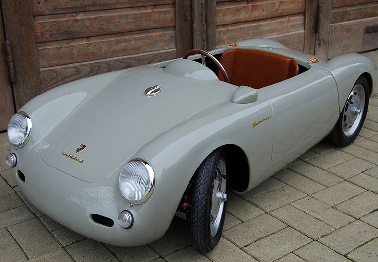 The Porsche 356 Speedster and 550 Spyder in scale 1:2.3 are handmade in Germany, using the best materials. Both cars are equipped with an electric motor. You can order the modelcars without an engine as well. The models will be built in limited editions and under license from Dr. Ing. h.c. Porsche AG.